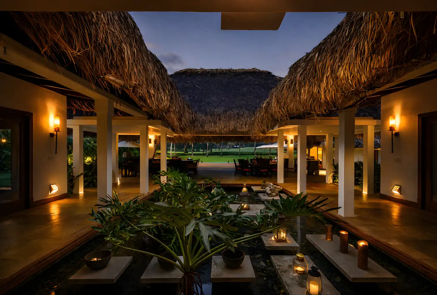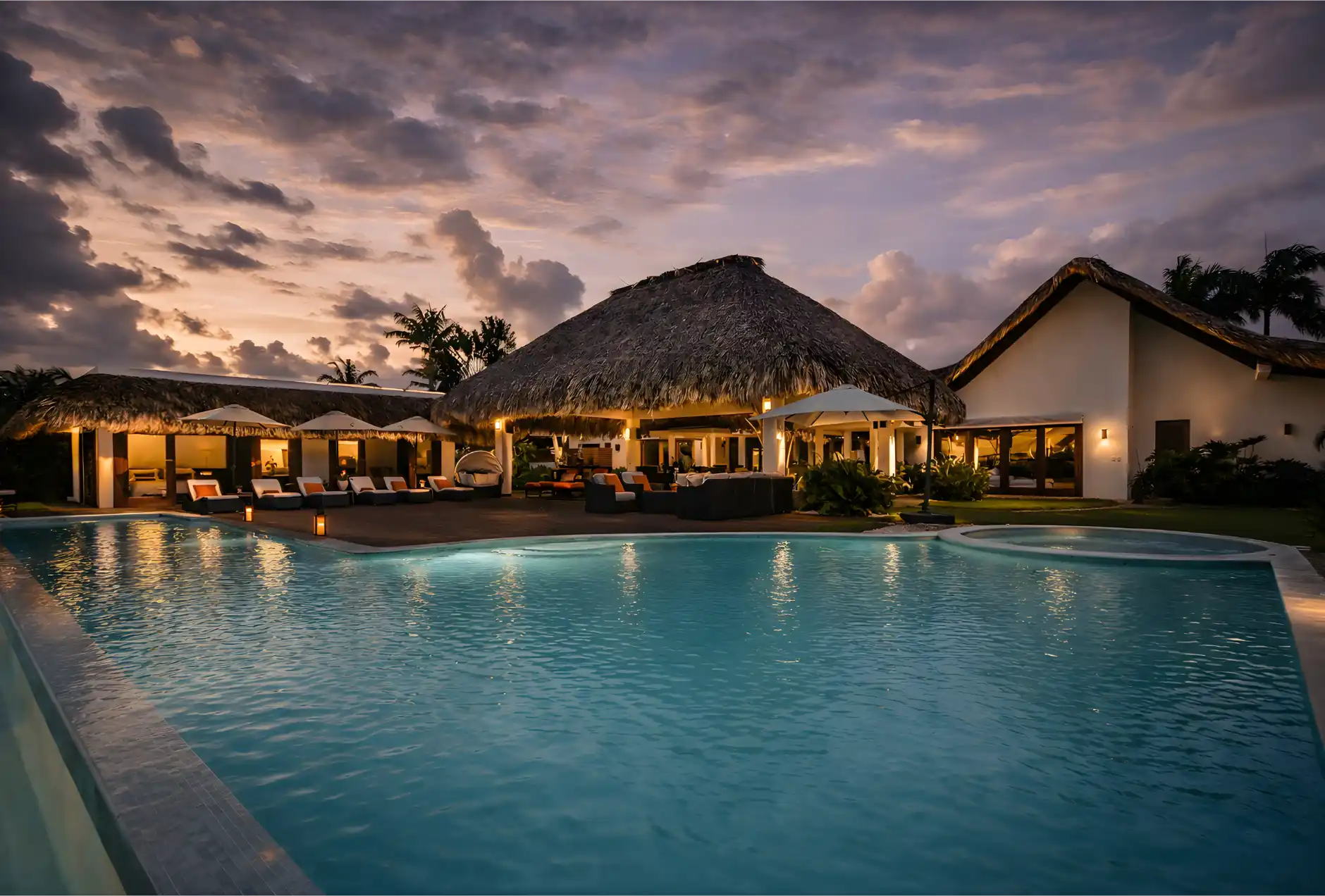 A refined tropical residence overlooking the golf course, featuring expansive outdoor living, mature gardens, and a central pool designed for effortless gatherings. The open layout, artisanal finishes, and serene ambiance offer a distinguished residential experience for those seeking privacy, comfort, and an elevated Caribbean lifestyle in Casa de Campo.